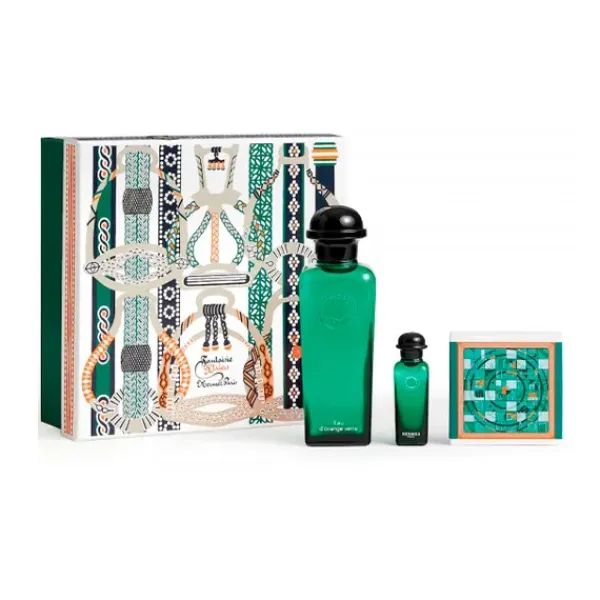 El estuche se compone de Eau de cologne Eau d’Orange Verte (100 ml), Eau de cologne Eau d’Orange Verte (miniatura de 7,5 ml) y jabón perfumado (50 g).