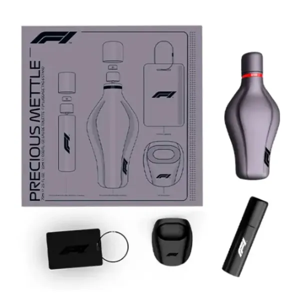 En un frasco tan férreo como los nervios de un piloto de F1 al prepararse para el inicio de una carrera, Precious Mettle comienza con una explosión de frescura. Notas clásicas de cuero, lavanda y pachulí combinadas con aires de mandarina y pimienta rosa metálica.