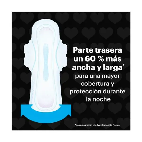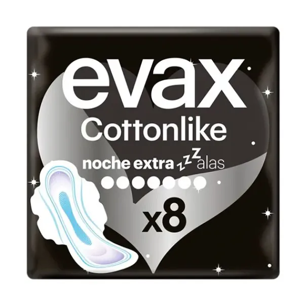 Las compresas femeninas Evax Cottonlike Noche Extra están diseñadas para ofrecerte la protección que necesitas por la noche cuando tienes la regla y así ayudarte a dormir mejor.