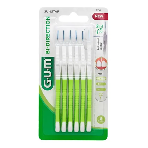 Los cepillos GUM® BI-DIRECTION son los únicos cepillos interdentales bidireccionales. Los filamentos antibacterianos y triangulares ayudan a eliminar hasta un 25% más de placa.