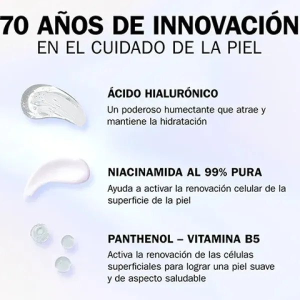 Esta fórmula proporciona una hidratación supercargada que dura todo el día con ácido hialurónico, niacinamida y péptidos.