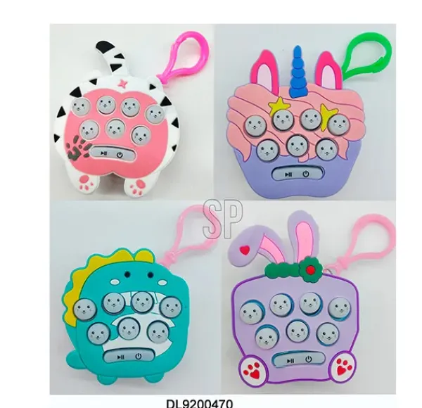 LLAVERO JUEGO DE TOPOS. MATERIAL PP, PV Y ABS, TAMAÑO: 60X30X85MM, PESO 38 GRAMOS. B/O, 3X LR44 PILAS INCLUIDAS Y REEMPLAZABLES. 4 DISEÑOS SURTIDOS: CONEJITO, DINO, UNICORNIO, GATO. EN NUESTRA TARJETA BLISTER DE DISEÑO EMBALAJE CERTIFICADO FSC.