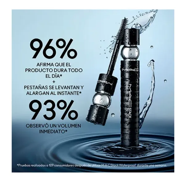 *Pruebas realizadas a 109 consumidores después de utilizar la máscara de pestañas M·A·CStack Waterproof durante una semana.