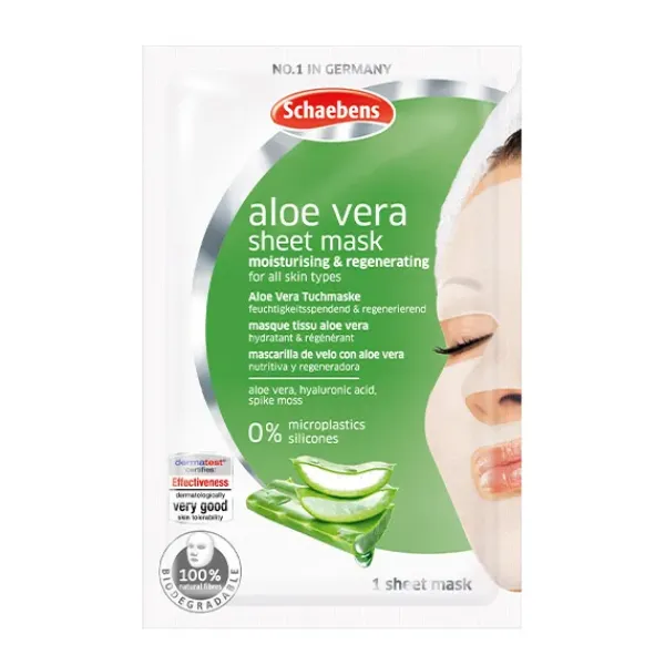 Mascarilla facial con aloe vera que estimula la regeneración celular, hidrata y aporta frescura con efecto inmediato.