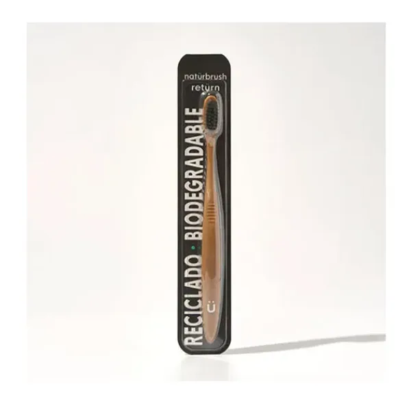Cepillo de dientes manual 100% biodegradable, con filamentos 100% vegetales libres de petróleo y plástico.