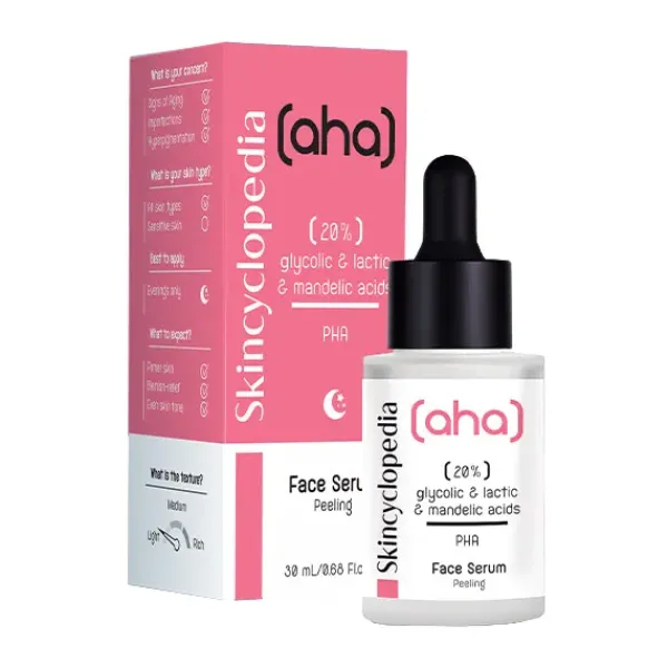 Sérum facial con acción peeling para la noche, con ácidos láctico, glicólico, mandélico y polihidroxilado.