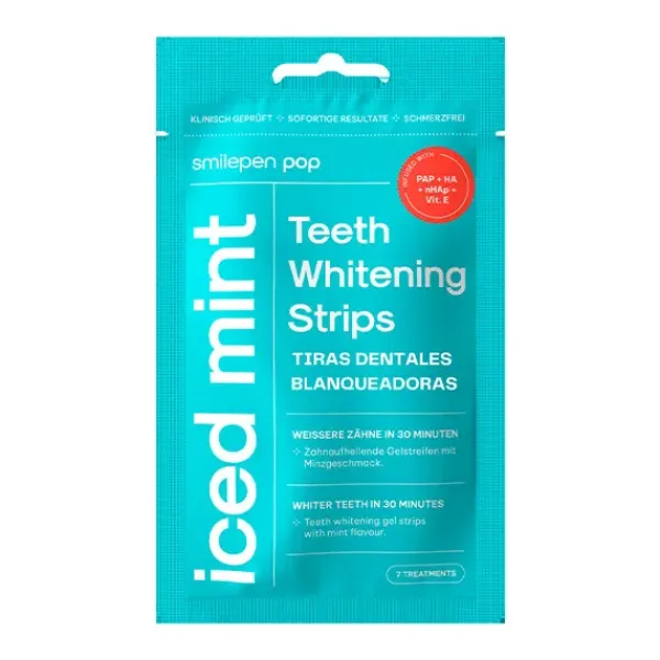 La fórmula patentada de Smilepen en las tiras Pop para blanqueamiento dental también contiene ingredientes que fortalecen y nutren el esmalte dental y las encías.