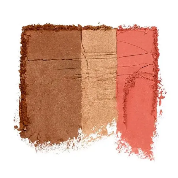 Esculpe tu rostro con con el polvo bronceador de intensidad profunda, realza tus pómulos con el colorete rosado e ilumínalos con el highlighter cálido. Todos adaptándose a tu tono de piel.