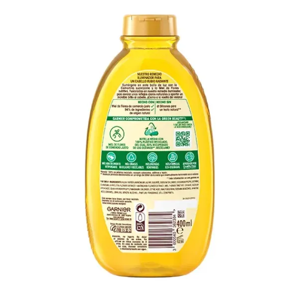 Garnier Ultra Suave Camomila y miel de flores champú iluminador para niños.