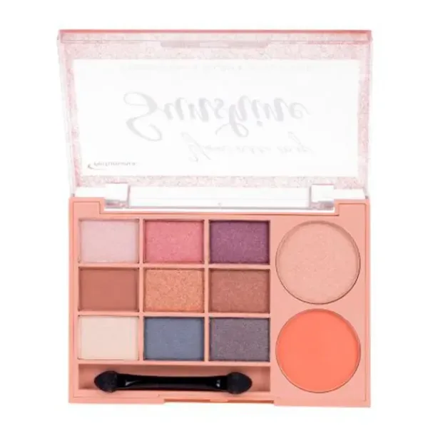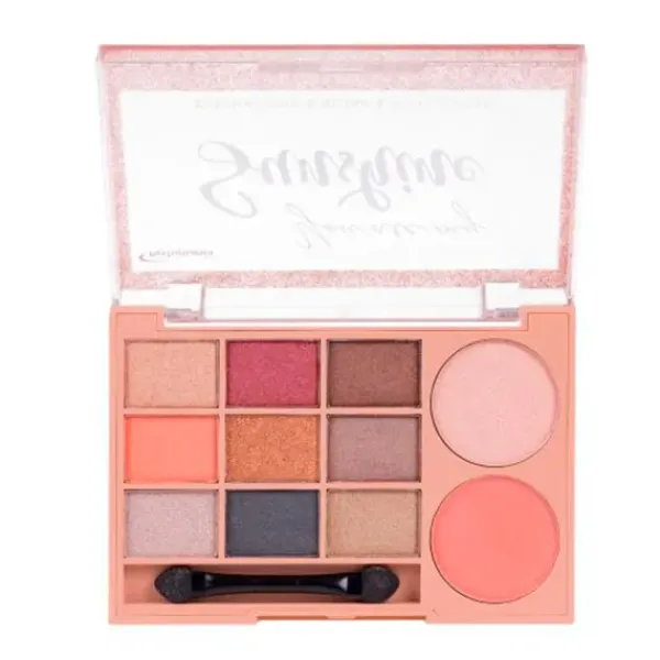 Paleta de 9 sombras, colorete e iluminador.