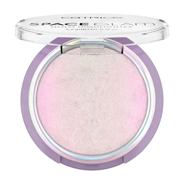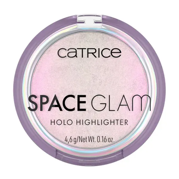 Vuela al espacio con nosotros: el iluminador Space Glam Holo 010 Beam Me Up! de Catrice crea un brillo de otro mundo. Aplícalo en las mejillas o los ojos para crear un cambio cromático mágico en tonalidades rosa, dorada y lima. Esto se consigue con el polvo iluminador iridiscente que refleja la luz con acabado holográfico multicromático.