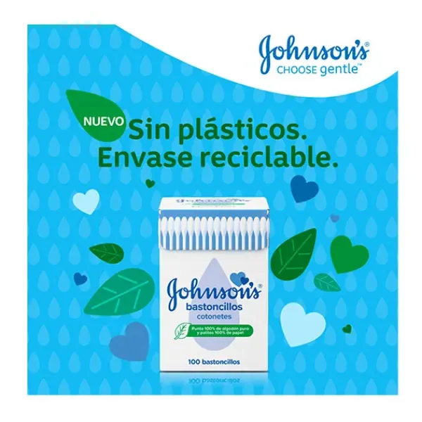 En Johnson’s Baby desarrollamos productos que son amigables con el medio ambiente, por lo que estos Bastoncillos no contienen plásticos y vienen en un envase reciclable hecho de papel que está fabricado con un 90% de materiales reciclados.