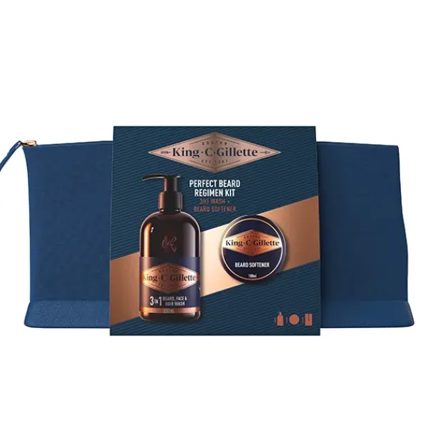 Regala King C. Gillette Beard Essentials Bag Set, con gel de lavado para barba y cara, bálsamo y peine para barba y un elegante neceser.