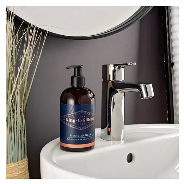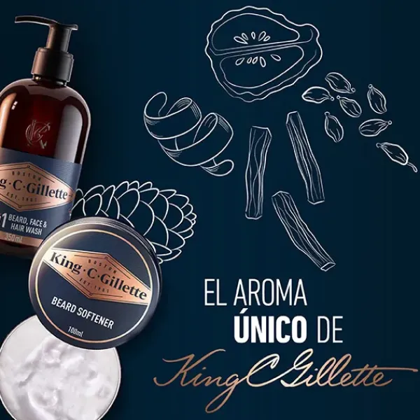 El champú (con agua de coco, aceite de argán y de aguacate) asegura una barba limpia y una piel fresca. El bálsamo (enriquecido con manteca de cacao y de karité y aceite de argán) asegura una barba suave y flexible. El pináculo de la innovación y la experiencia que abarca más de un siglo y la única línea con el nombre de nuestro padre fundador: King C. Gillette.