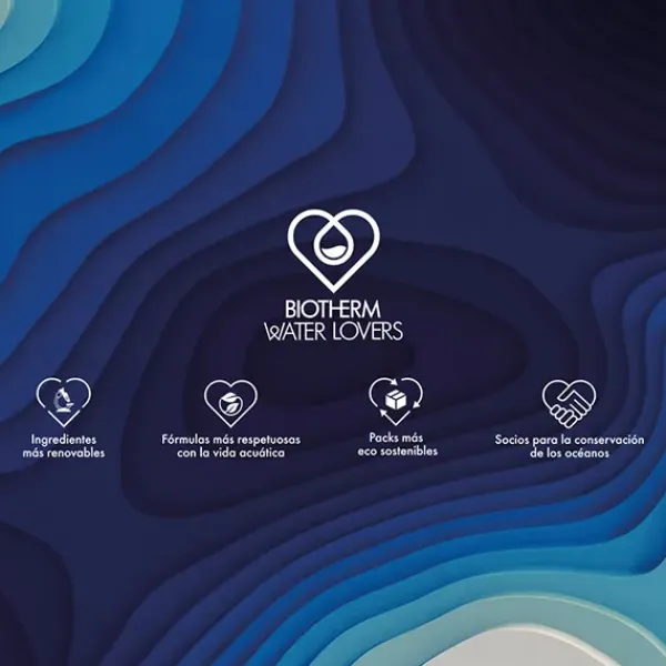 Biotherm tiene un lema: VENIMOS DEL AGUA, DEVOLVAMOSLA TODO LO QUE NOS HA DADO. Por ello cada día utilizan: