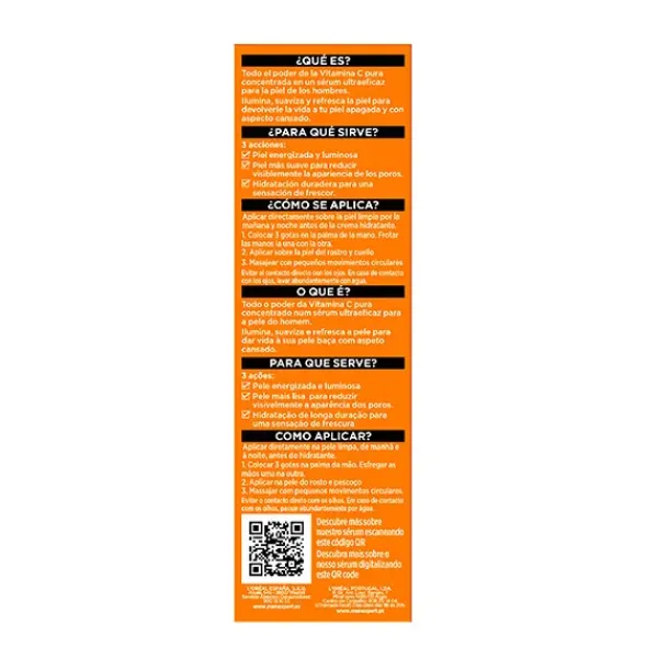 Todo el poder de la Vitamina C pura concentrada en un 10% en un sérum ultraeficaz para la piel de los hombres.