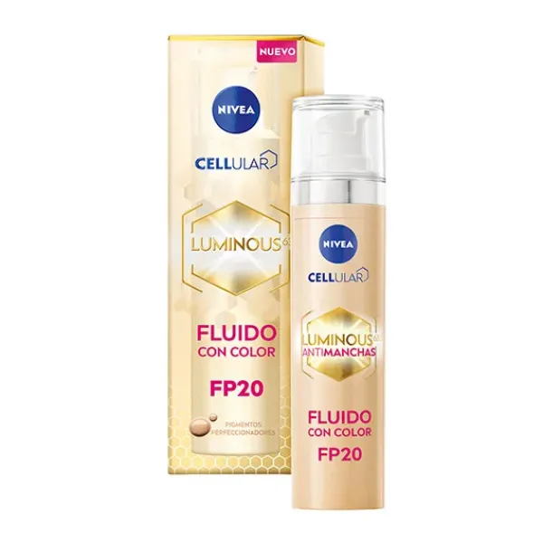 El Fluido con Color FP20 Doble Corrector de NIVEA Cellular Luminous 630 perfecciona la piel gracias a su doble acción: