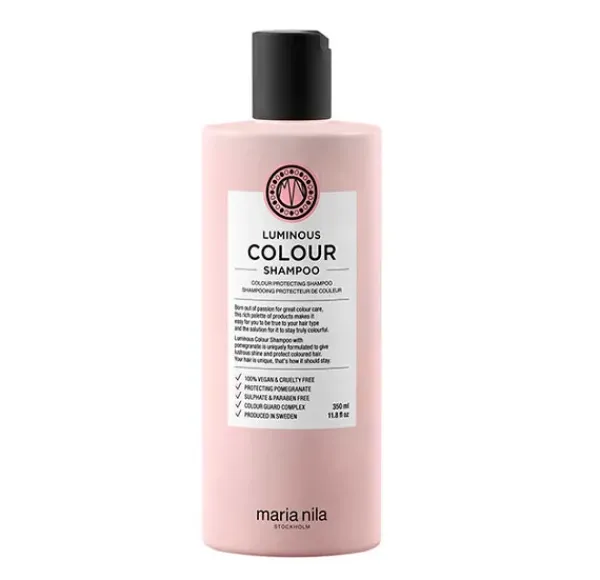 Un champú que conserva el color creado para reconstruir y fortalecer la estructura del cabello a la vez que aporta brillo, dando un brillo extra a tu color de cabello natural o teñido. El champú contiene extracto de granada y Colour Guard Complex que protegen el cabello y el cuero cabelludo y ayudan a reducir la pérdida de color asociada con el lavado, el peinado con calor, los rayos UV y los radicales libres. El champú Luminous Colour tiene un aroma afrutado a manzana, mora y melocotón.