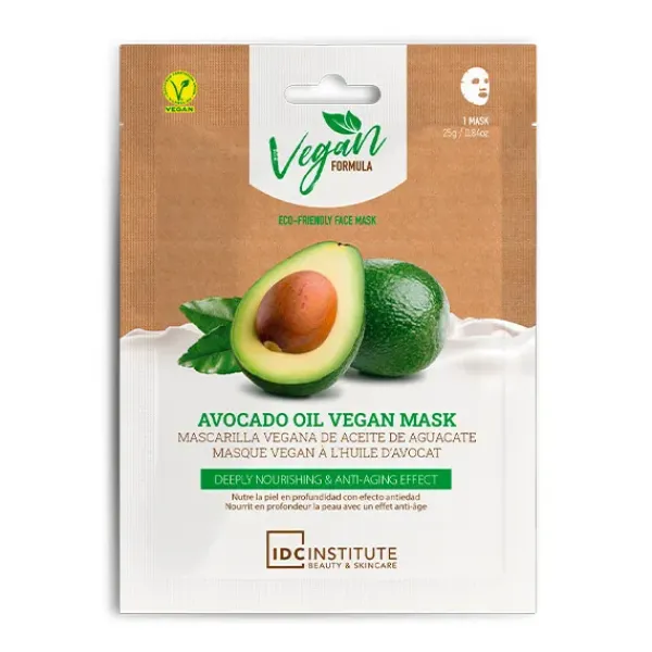 Mascarilla vegana en formato papel impregnado de aceite de aguacate con efecto hidratación en profundidad y antiedad.