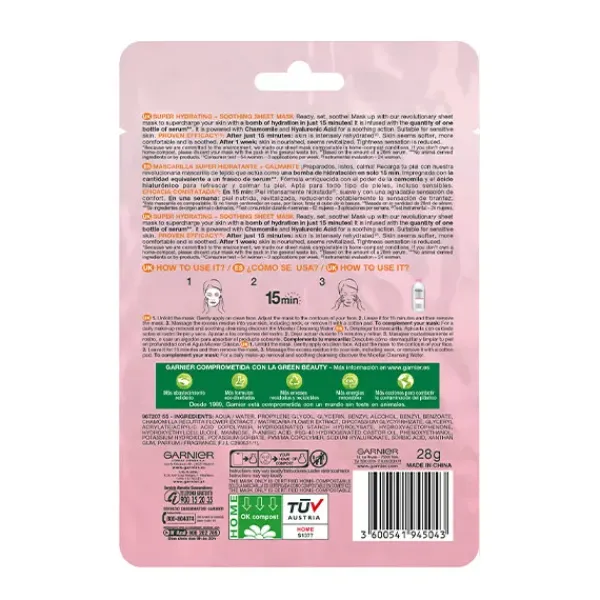 El tejido del que están hechas se adapta a tu rostro de manera suave y calma tu piel dejándola hidratada gracias a su contenido en camomila, ácido hialurónico y sérum hidratante.