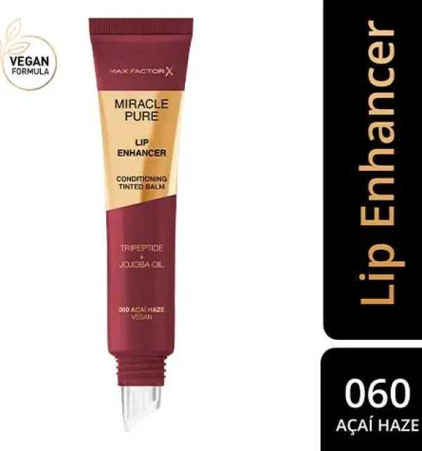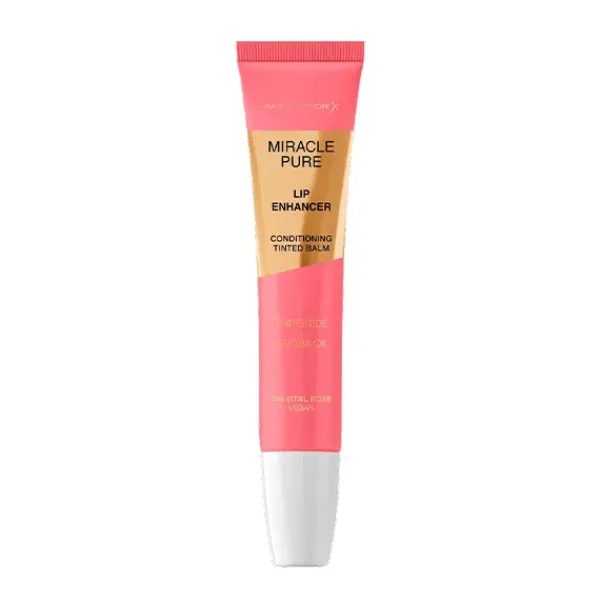 Hidrata, trata y da brillo con Max Factor Miracle Pure Lip Enhancer, un bálsamo labial hidratante con un acabado brillante. Clínicamente comprobado para proporcionar hasta un 85% más de hidratación en los labios*. Formulado con aceite de jojoba y tripeptidos para un tratamiento que mejora la apariencia de los labios, dejando los labios al natural rejuvenecidos después de solo 2 semanas**. Disfruta del aplicador curvado de silicona para un deslizamiento perfecto y una sensación acolchonada. Elige entre siete tonos luminosos, incluyendo un tono transparente universal que también se puede usar como una mascarilla nutritiva para los labios durante la noche.