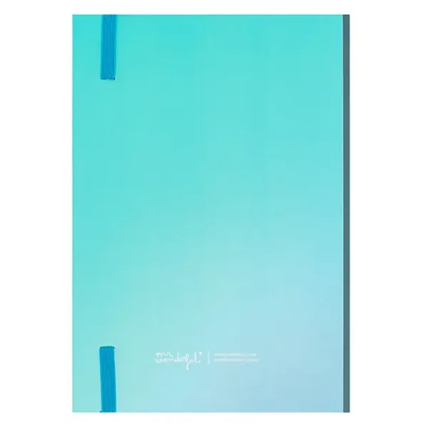 – Cuaderno azul de tapa dura de tamaño A5 con distintos blocs de notas en su interior.
