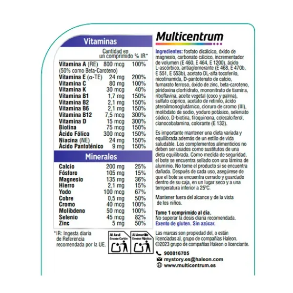 Multicentrum Hombre 50+ es un complemento alimenticio completo, con vitaminas y minerales, especialmente formulado para satisfacer las necesidades nutricionales de los hombres a partir de los 50 años.
