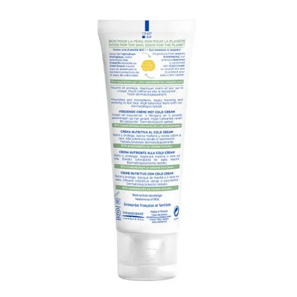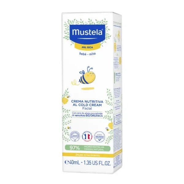 La crema facial al Cold Cream y cera de abeja Bio nutre de forma inmediata y duradera la piel seca del bebé y la protege de las condiciones ambientales.