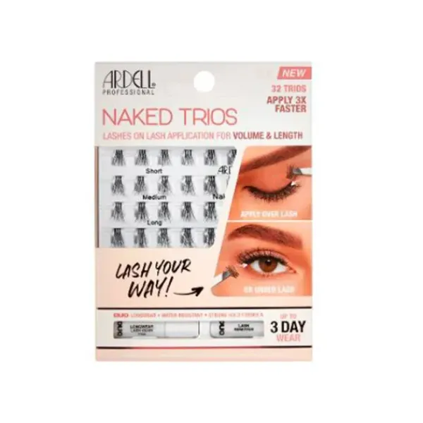 Las Naked Trios son las nuevas pestañas de Naked para completar la línea de pestañas individuales. Con sus características fibras cónicas, curvatura suave y acabado natural se consigue ese deseado look natural. Se aplican en minutos y duran hasta 3 días. Incluye: 32 trios, Adhesivo y Remover.