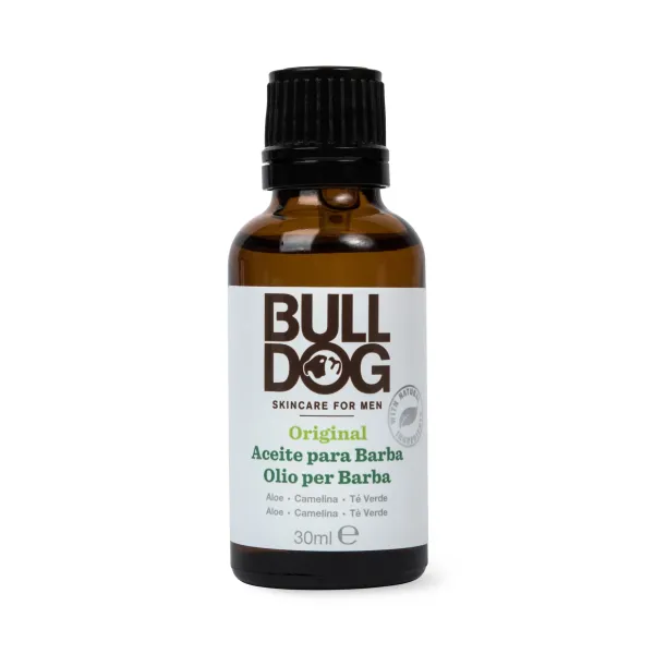 Cuida tu barba con el aceite barba Bulldog Original. Con su contenido rico en aloe vera, aceite de camelia y té verde e…