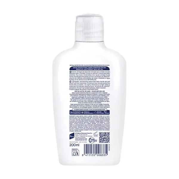 Leche protectora ligera para pieles sensibles y atópicas. Fórmula superior x4 anti: alergias solares, picores, rojeces y sequedad.