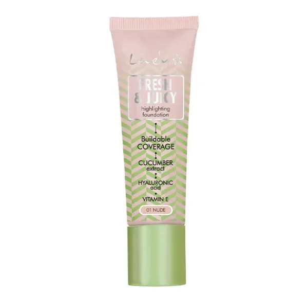 Base de maquillaje iluminadora con extracto de pepino fresco, de cobertura media y edificable.