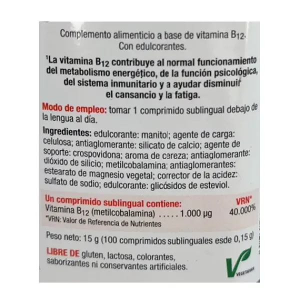 Contribuye al normal funcionamiento del metabolismo energético, de la función psicológica, del sistema inmunitario y ayuda a disminuir el cansancio y la fatiga.