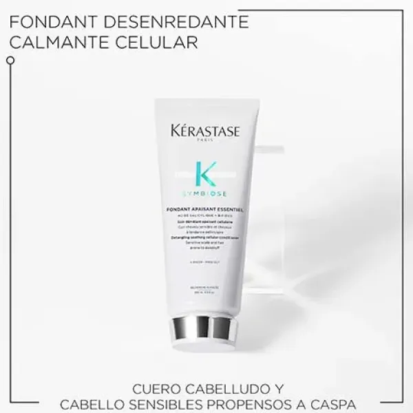 El Fondant Apaisant Essentiel es un acondicionador desenredante y calmante celular para el cuero cabelludo sensible y los cabellos con tendencia a la caspa.