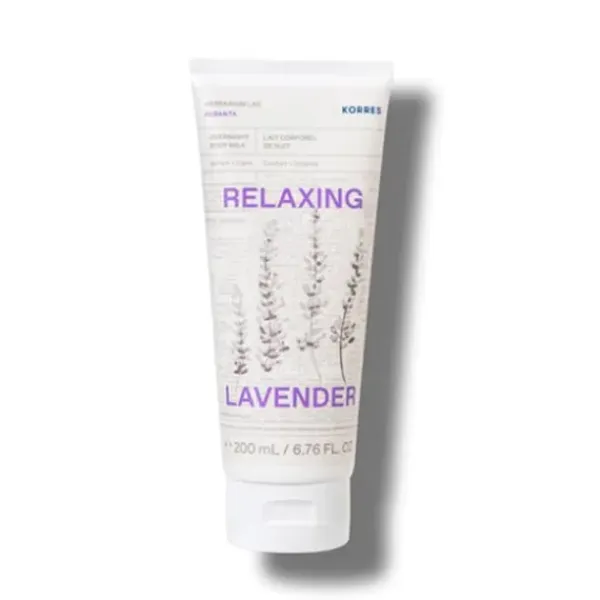Leche corporal nocturna, potenciada por la tecnología Aromadream y el extracto puro de lavanda de KORRES, diseñada para aportar un ritual relajante antes de dormir.