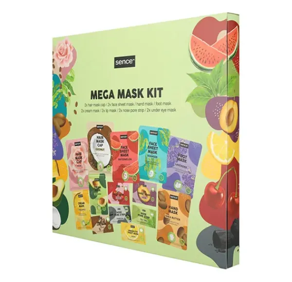 Disfrute del cuidado personal con el Mega Mask Kit de Sence Planet Love, que incluye catorce productos inspirados en la naturaleza para un día de spa en casa. De la cabeza a los pies, disfrute de la nutrición con dos mascarillas capilares, dos mascarillas faciales y una mascarilla para manos, otra para pies, otra para crema, otra para labios, otra para poros nasales y otra para debajo de los ojos. Comience su viaje de cuidado personal con un toque natural.