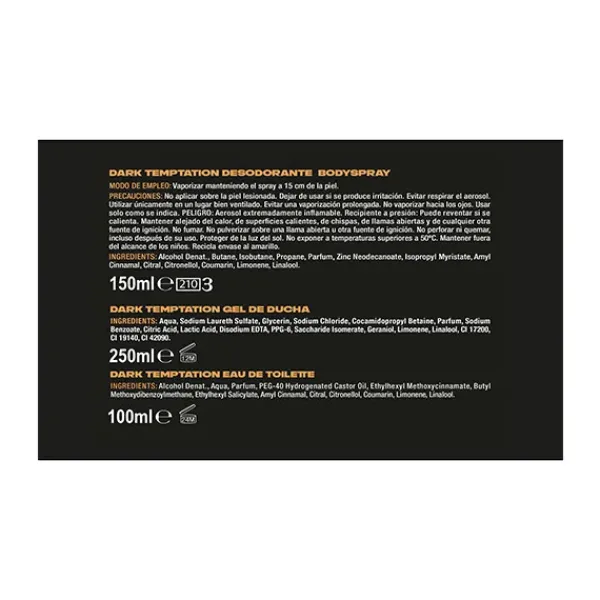 Axe Mochila de regalo para hombre Dark Temptation con desodorante en aerosol, eau de toilette y gel de ducha 150ml+50ml+250ml .
