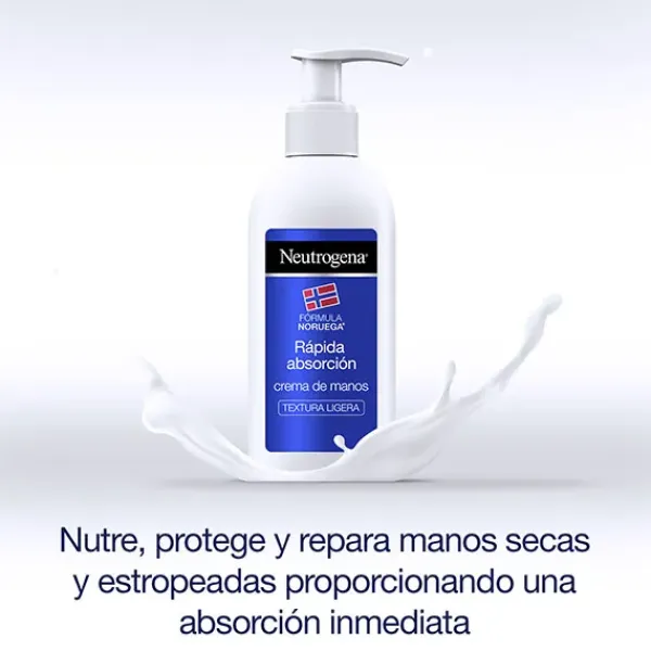 La Crema de Manos Rápida Absorción de Neutrogena es una crema ligera que nutre, protege y repara manos secas y estropeadas proporcionando una absorción inmediata.