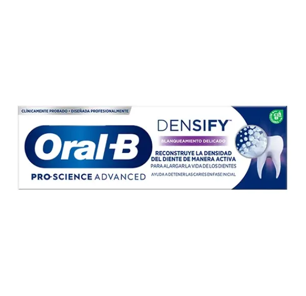La pasta dentífrica Oral-B Pro-Science Densify aumenta la densidad del esmalte en cada cepillado para mantener tus dientes en buena condición.