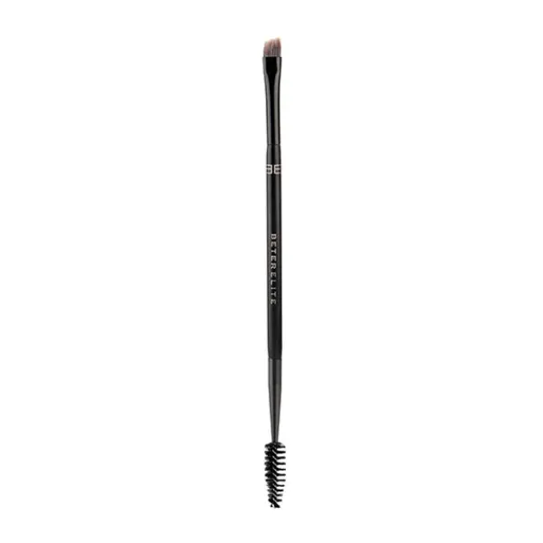 Pincel angulado de pelo corto y firme para dar color y disciplinar las cejas.