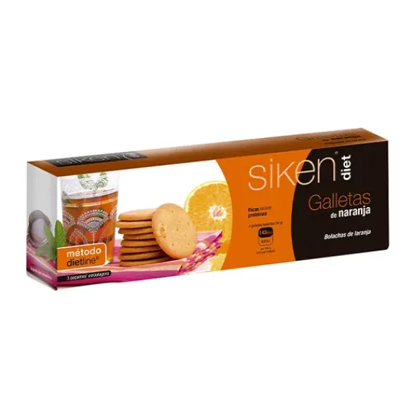 Siken Diet galletas naranja. Galleta rica en proteínas, con naranja. Con un aporte de tan sólo 143 kcal/4 galletas.