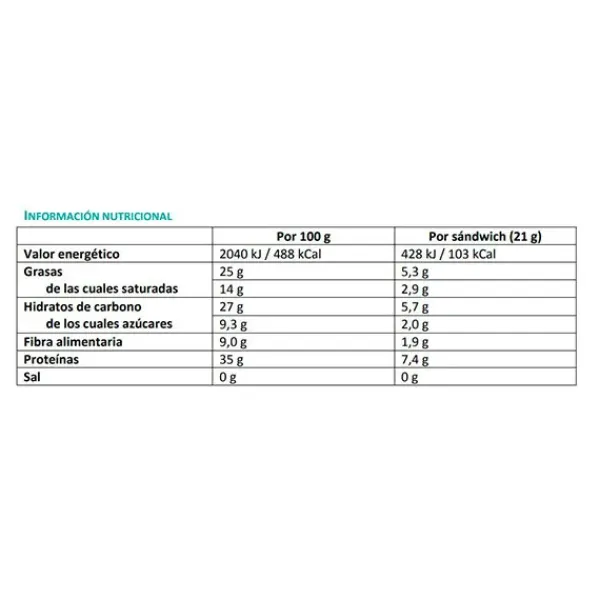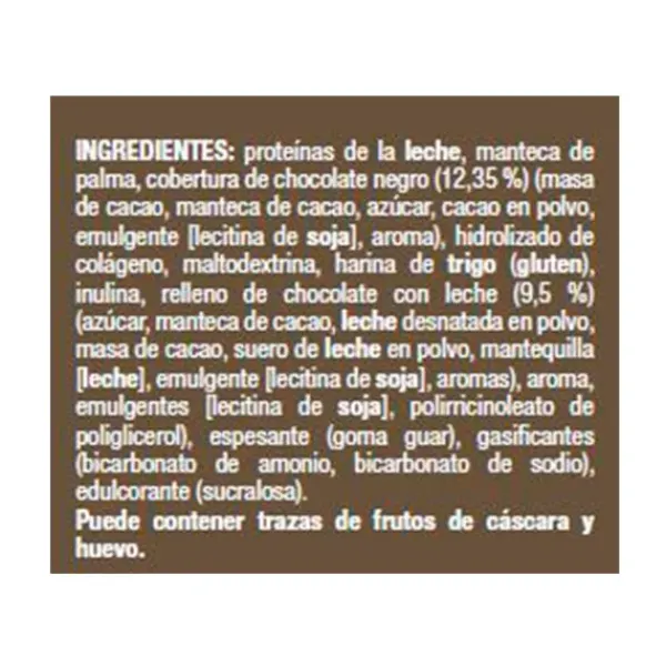 Alimento rico en proteínas. Con azúcares y edulcorantes.