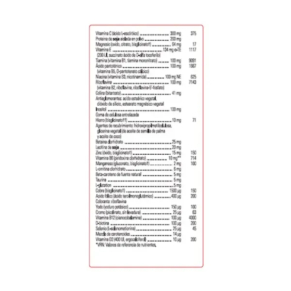 Con alto contenido en vitaminas del complejo B para mantener el nivel de energía, vitamina C para ayudar la función inmune durante y después de la actividad física, y con nutrientes como zinc, cobre o vitamina E que protegen las células del daño oxidativo.