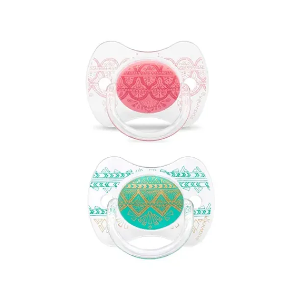 Chupetes en talla 0/6 meses con tetina fisiológica de silicona.