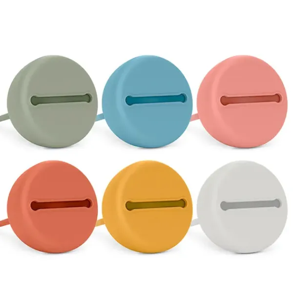 Portachupetes con ranura tipo cascabel para introducir y sacar los chupetes.