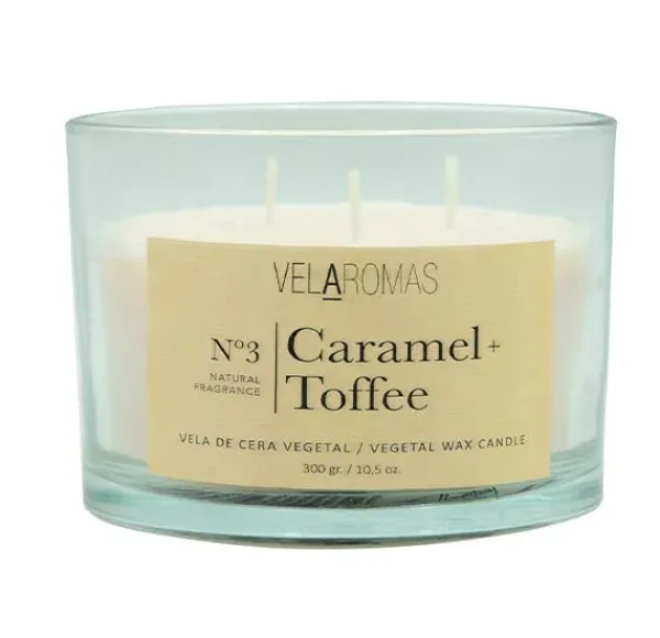 Vela 3 Mechas con tapa de cera vegetal con fragancia a CARAMEL TOFFE