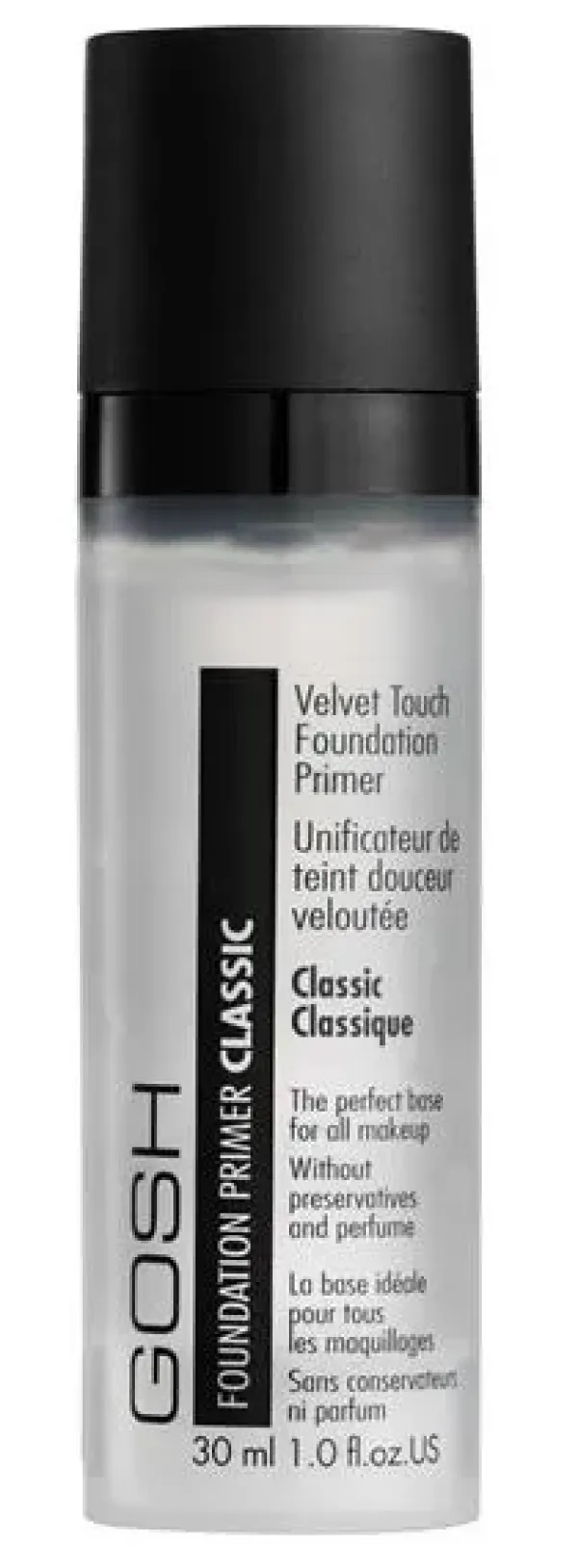 Velvet Touch Foundation Primer ClassicVelvet Touch Foundation Primer Classic es la prebase de maquillaje de Gosh que prepara la piel para el posterior maquillaje.Tiene una fórmula incolora apta para todos los tonos de piel y rellena los poros y las líneas finas creando un rostro uniforme, mate y único.Con Velvet Touch Foundation Primer Classic consigues un tacto suave sedoso de la piel y permite aplicar la base de maquillaje de manera sencilla y suave.La prebase Velvet Touch Foundation Primer Classic se puede utilizar después de hidratar la piel o sobre la piel completamente limpia.¡Prepara tu piel para deslumbrar!