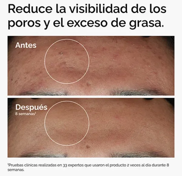 Reduce la visibilidad/apariencia de los poros en 4 semanas.*