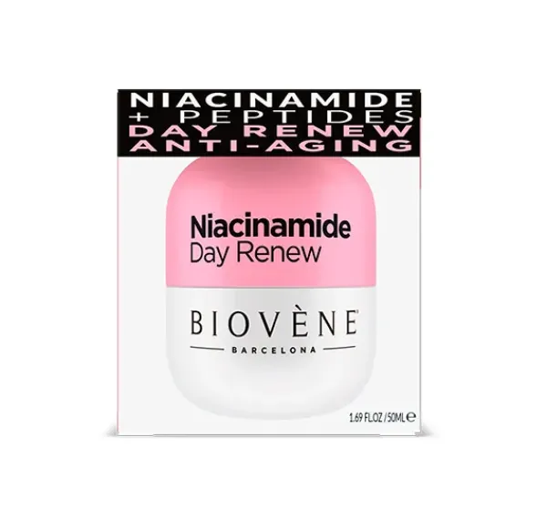 Libera el potencial de tu piel para obtener un brillo juvenil y experimenta una apariencia radiante con Niacinamide Day Renew, una crema hidratante revitalizante enriquecida con potentes péptidos antienvejecimiento y extracto orgánico de frambuesa. Esta lujosa fórmula es tu ayuda secreta para lograr una piel joven y luminosa.
