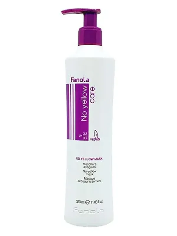 Mascarilla No Yellow de la marca Fanola neutraliza los reflejos amarillos no deseados de los cabellos canosos y de los rubios claros, con mechas y decolorados.